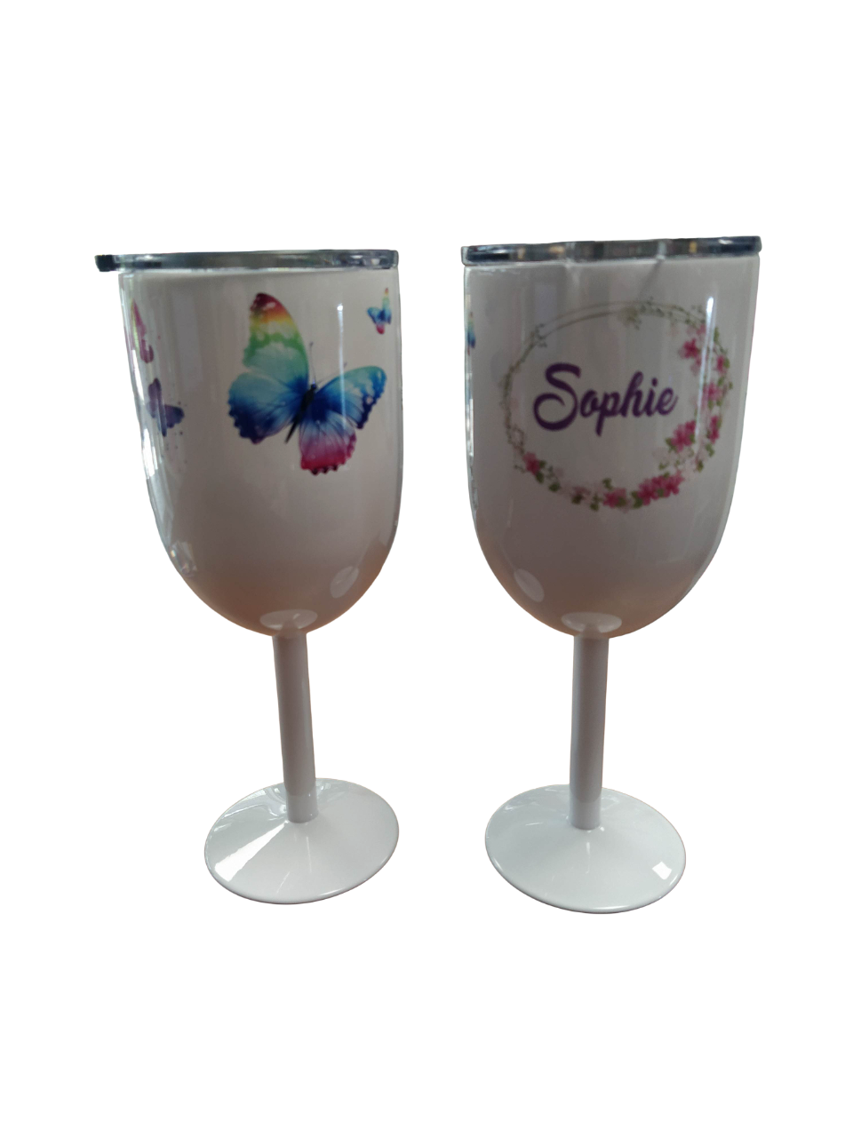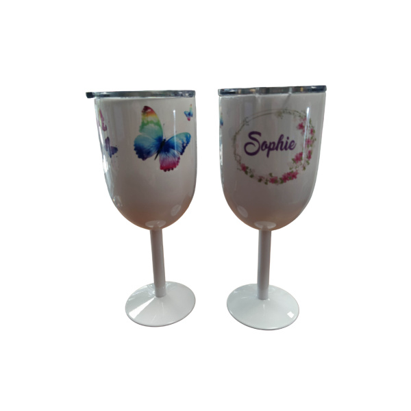 Verre à pied isotherme double paroi en acier inoxydable 350ml avec couvercle. Idéale pour conserver vos boissons fraiches ou chaudes.